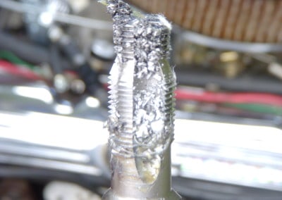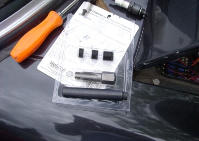 Update – when I had the engine rebuilt we could see there was no damage from doing the helicoil in the parking lot, I guess the loading it up with grease worked.