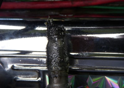 The car blew a spark plug. One of the Autolite 303’s blew out. My grandson Preston and I were on our way back from the track to Seneca Lodge and when we turned the corner into the lodge heard a POW and then some really different noises.