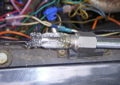 We pulled into a spot right in the front and opened the hood only to see that plug number 6 just blew out of it’s hole. Went to Napa Auto Parts, got a helicoil repair kit. Loaded the bit up with grease to catch the metal chips and installed it in the Seneca Lodge Parking lot. Worked just fine and we were off for a good time the rest of the weekend.
