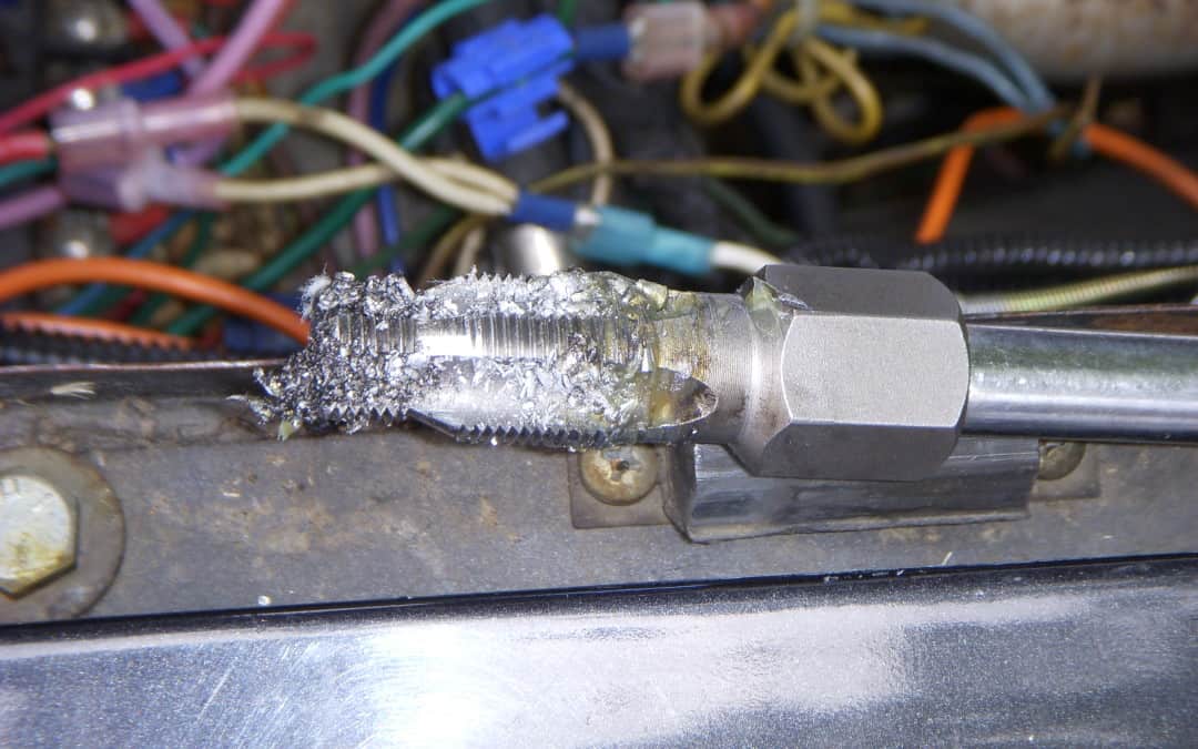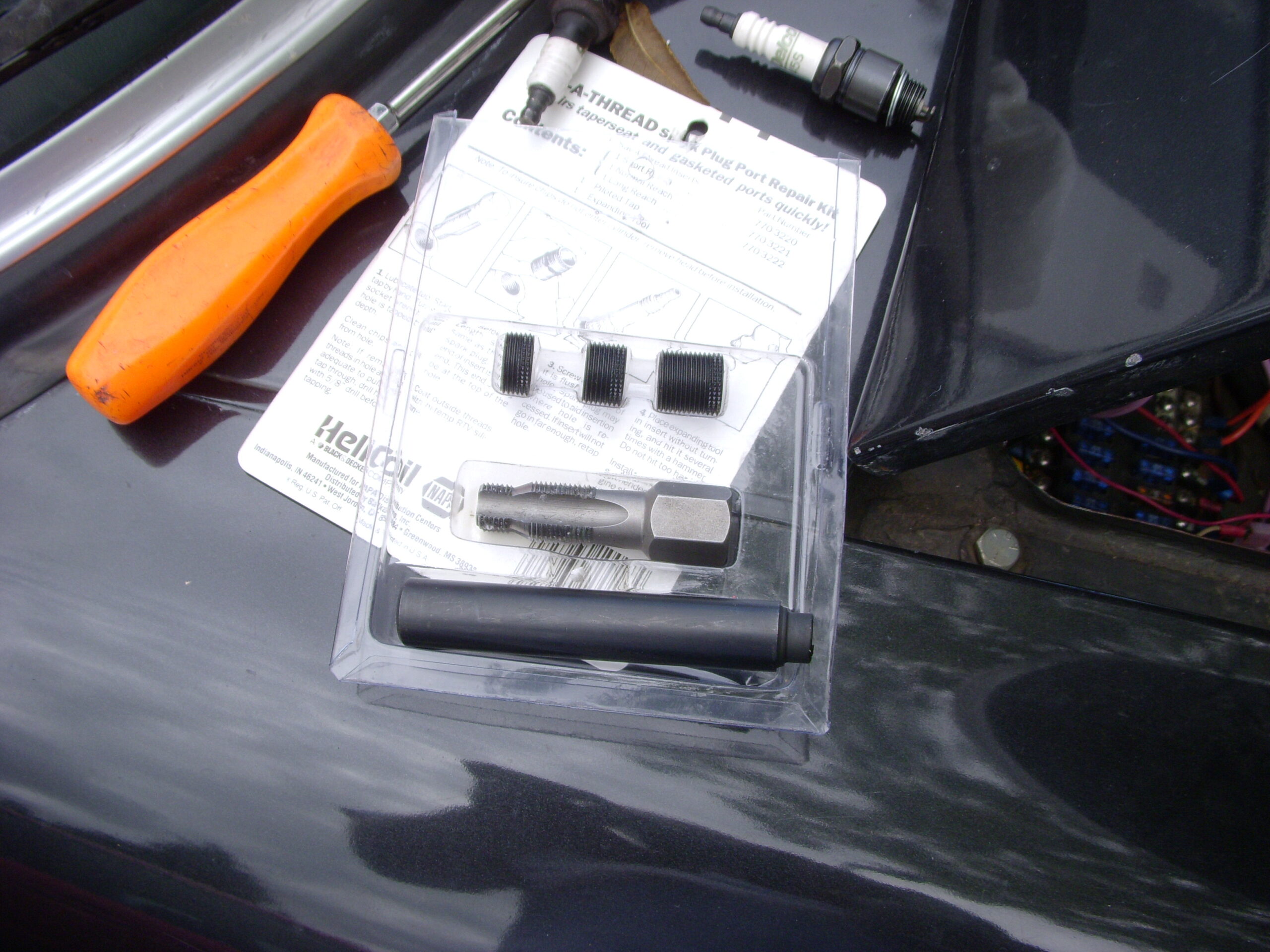 We pulled into a spot right in the front and opened the hood only to see that plug number 6 just blew out of it’s hole. Went to Napa Auto Parts, got a helicoil repair kit. Loaded the bit up with grease to catch the metal chips and installed it in the Seneca Lodge Parking lot. Worked just fine and we were off for a good time the rest of the weekend.