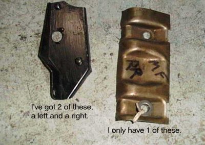 While putting the car together the first time I ran across these parts. Couldn’t find out from the parts catalog what they were and we’d could figure it out so I posted this online. By the time I found out the went under the ends of the windshield they had already been welded in as radiator supports. Still there, work great.