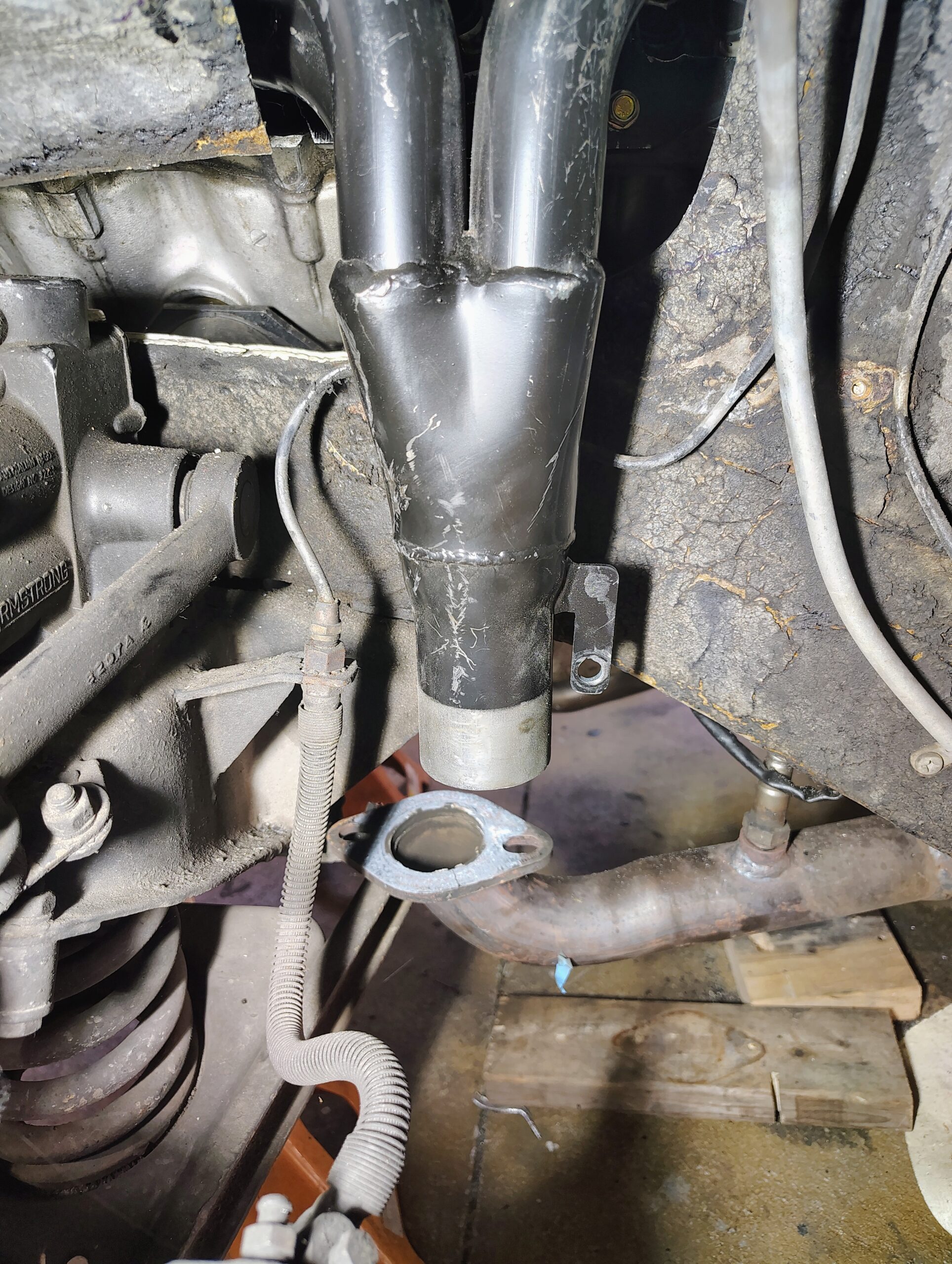 Also had to move the front brake line – it originally was exactly behind the collector and an 1/8″ behind – probably not good to boil the brake fluid.