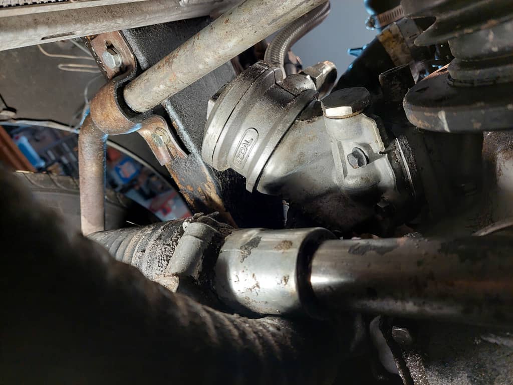 Where and how my oil filter is located. It is a MOCAL remote oil filter head using the side inlet/outlets – there are a lot of heads that have the I/O coming straight out but that wouldn’t work with my setup – too close to the radiator and the sway bar.