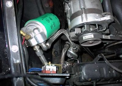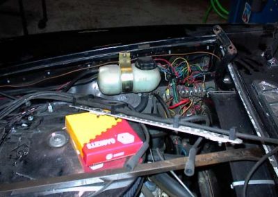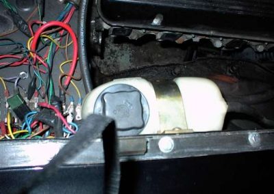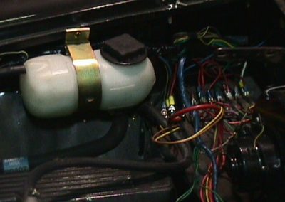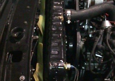 This was the mounting of things when I had the Buick engine. Now with the Oldsmobile engine the alternator is on the other side and I have a different overflow tank and aluminum radiator.